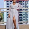 Green dress with double button detail.